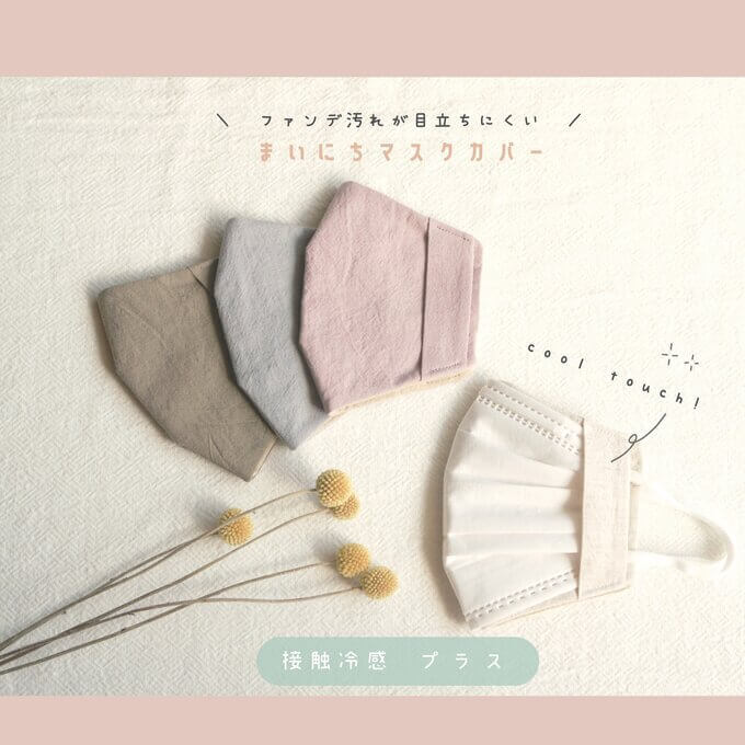 マスク荒れの原因を解決してくれて、淡色の柔らかい印象をお顔に与えてくれる「マスクカバー」です。コットンリネンを使用しているので、毎日お洗濯して清潔に使えるのも◎夏は涼しく感じる素材なので、屋外でも快適に過ごせますよ。