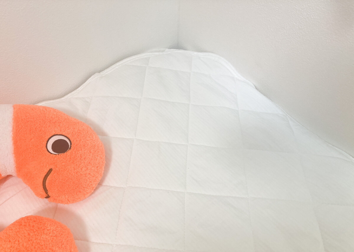 こちらはNクールスーパーの「ウレタン入り洗える接触冷感ラグ」。デコホームのアイテムです。その名の通りウレタンが中に入っているため、低反発のもっちりとした触り心地が楽しめます。