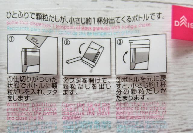 (1)仕切りがついた状態で顆粒だしをボトルに入れます。