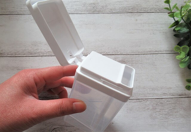 一方、ダイソーの保存容器は、商品名にもあるように「ワンプッシュ」でふたが開けられるので、調理中に蓋が開けられず、手こずるなんてことはまずありません!