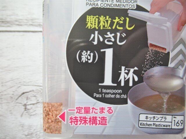 パッケージには「顆粒だしの素が小さじ1杯分ひとふりで出てくる」とあります。