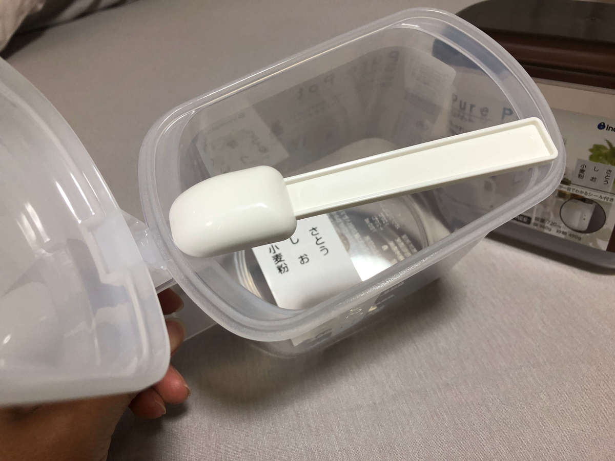 こういう細かい気遣いがあると、パン粉やショートパスタ入れとしても使えて便利です。