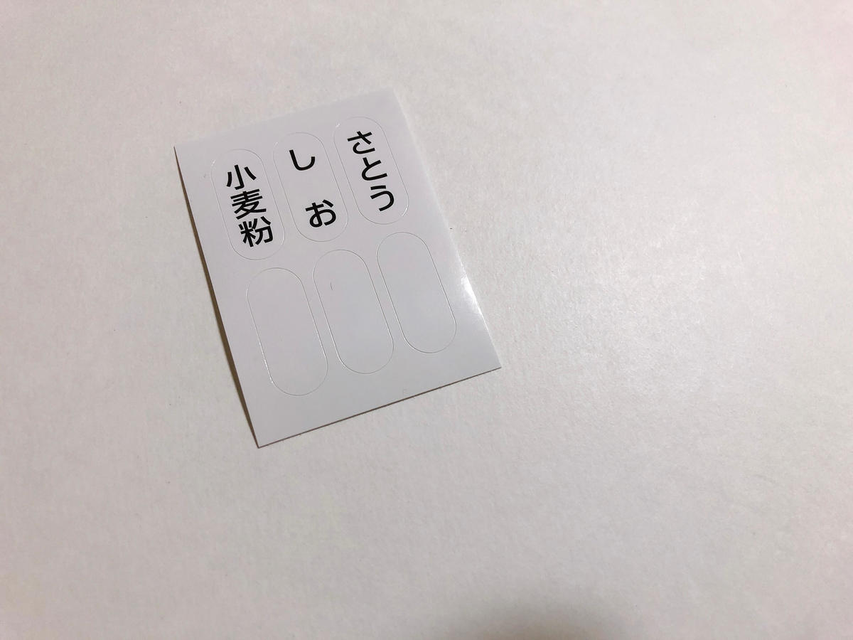 使う事が多い「さとう・しお・小麦粉」は、最初から文字が印刷されています。しかも他の3枚は自分で手書きができるのも嬉しいポイント。