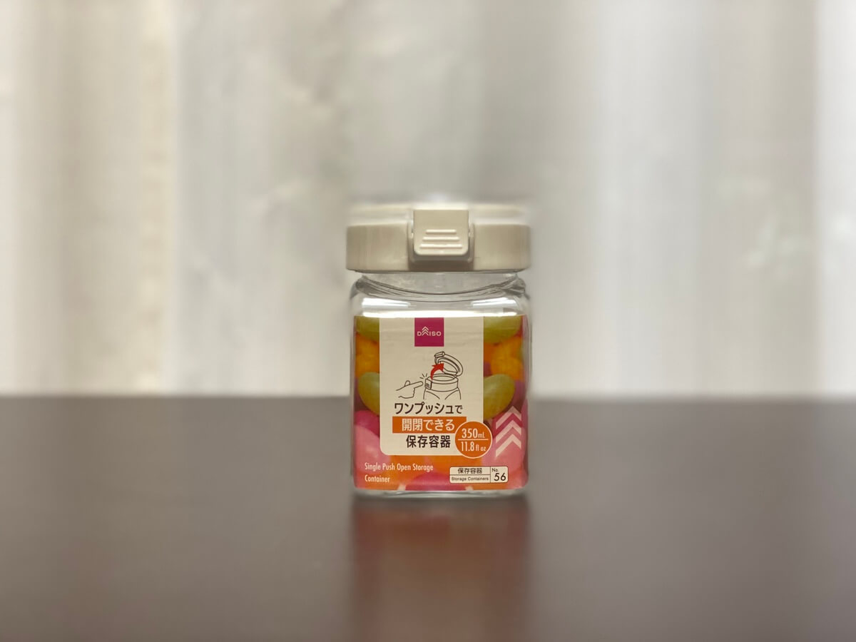 ダイソー「ワンプッシュで開閉できる保存容器」 350ml 110円(税込)