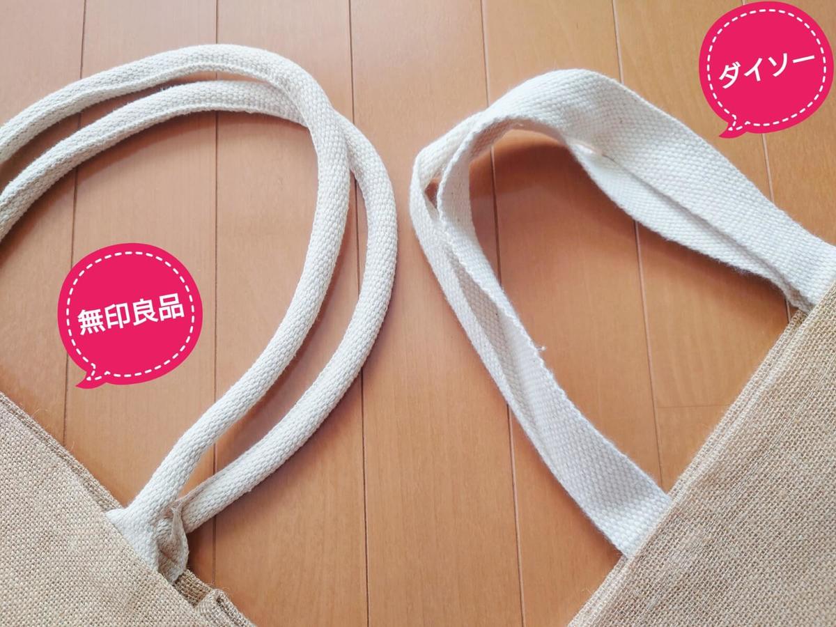 ダイソーも無印良品もどちらも同じくらいのクオリティで甲乙つけがたいバッグでした。