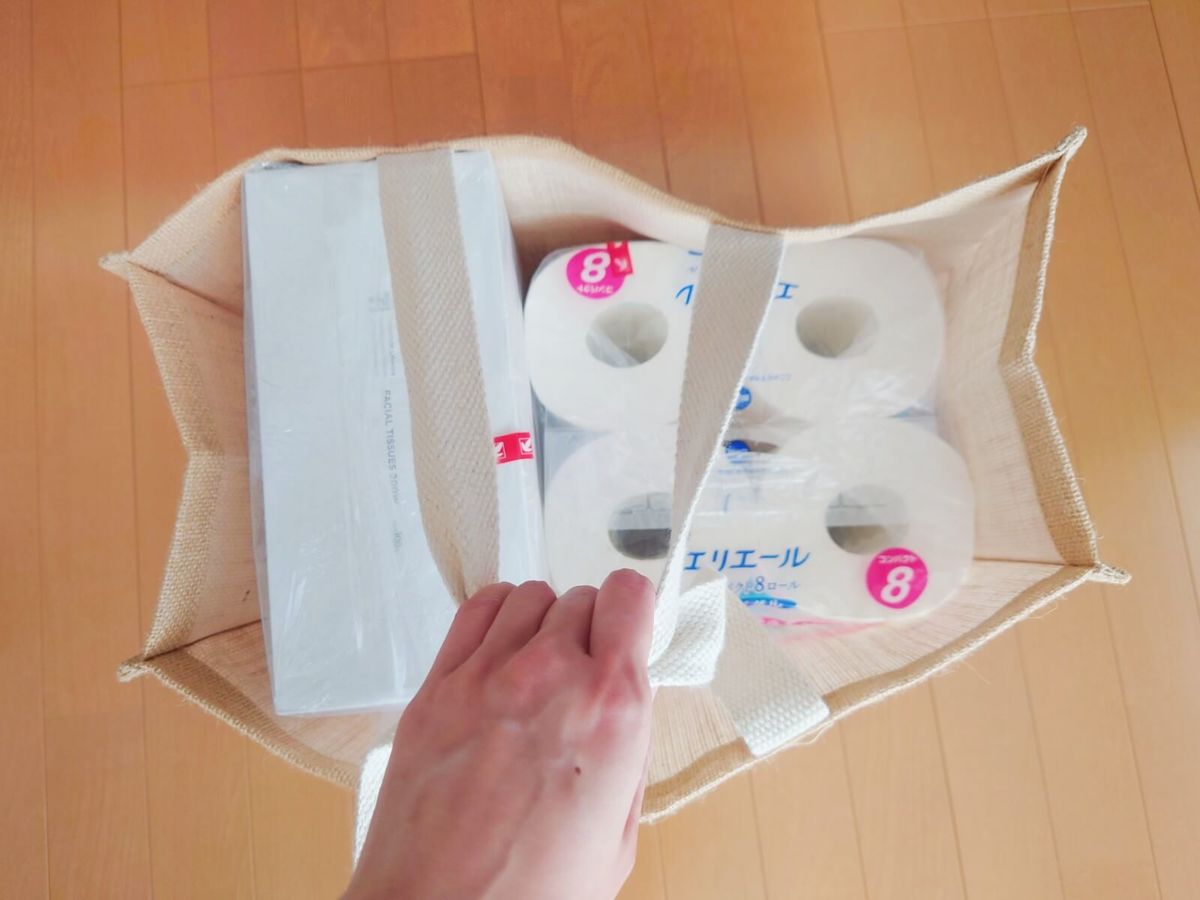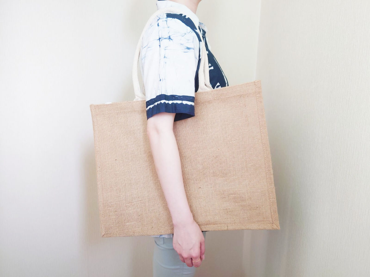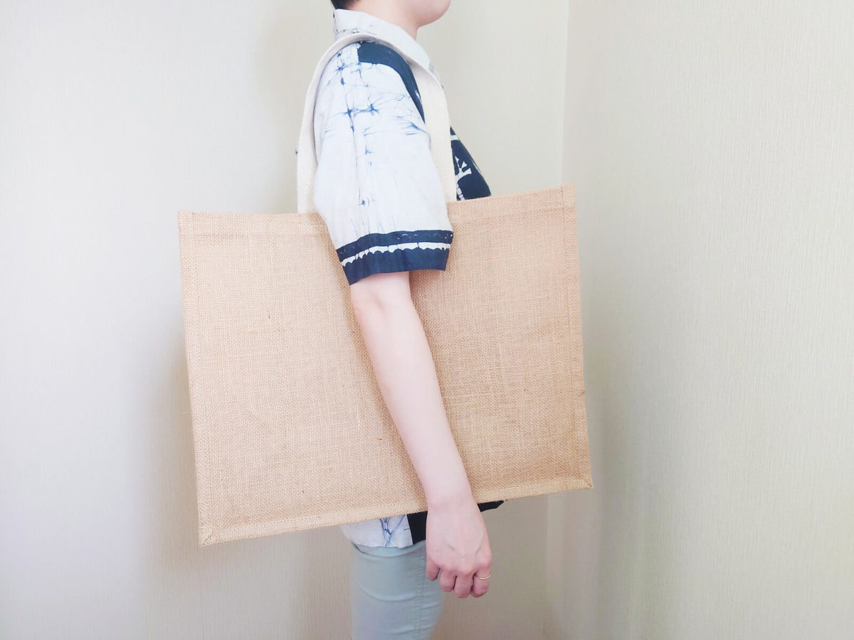 実際に、ダイソー版「ジュートトートバッグ」を使ってみました。