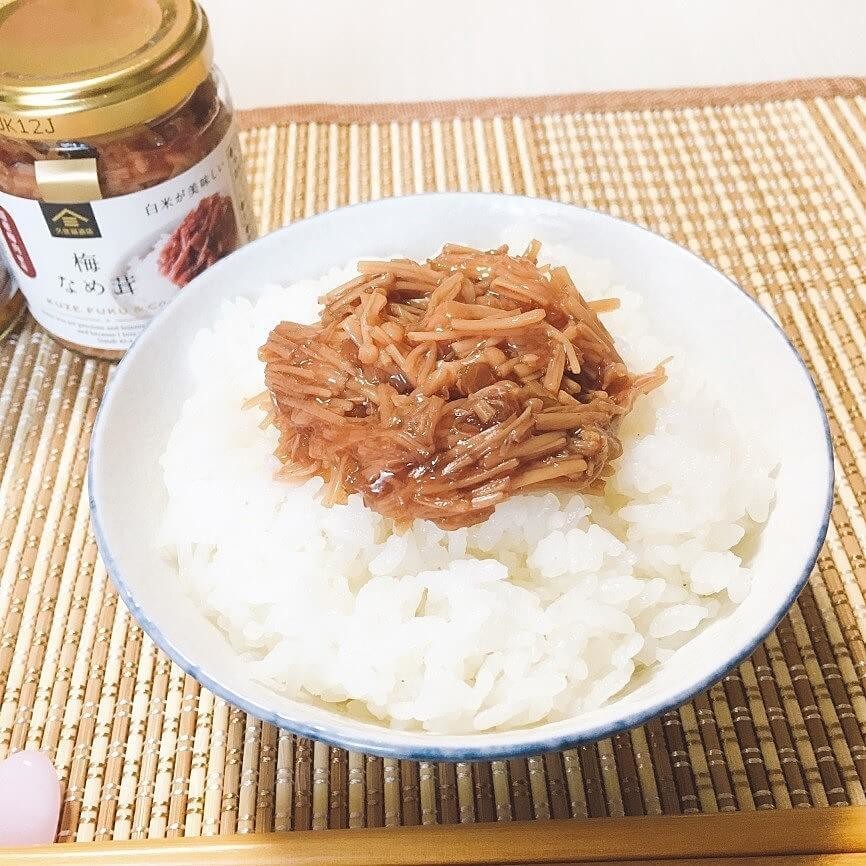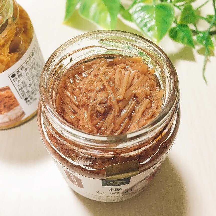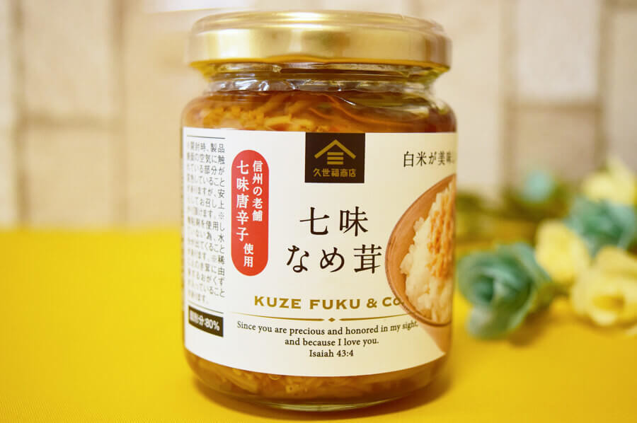 固形分が60%の商品が多い中、久世福商店の「七味なめ茸」は固形分が80%とのこと。より濃厚ななめ茸を堪能できます。