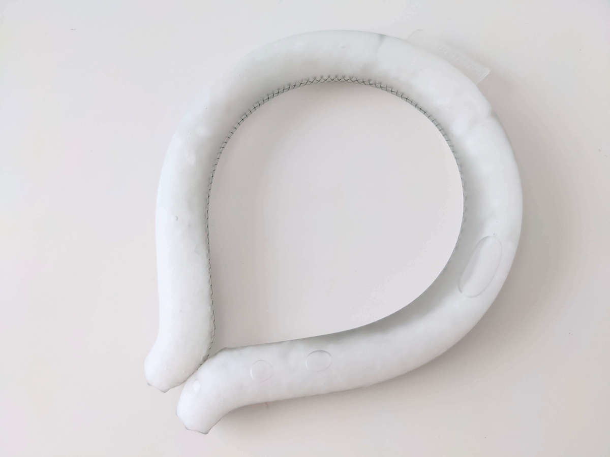 そして、この状態でもひんやり感はしっかりあります。 また素材は水よりも軽いので、ほぼ一日中付けていることもあるくらい身体への負担が少ないです。