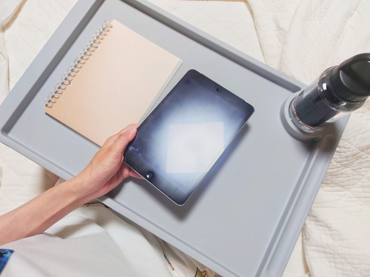 ベッドの上に置いてタブレットを見たり、読書するのにも適したサイズです。