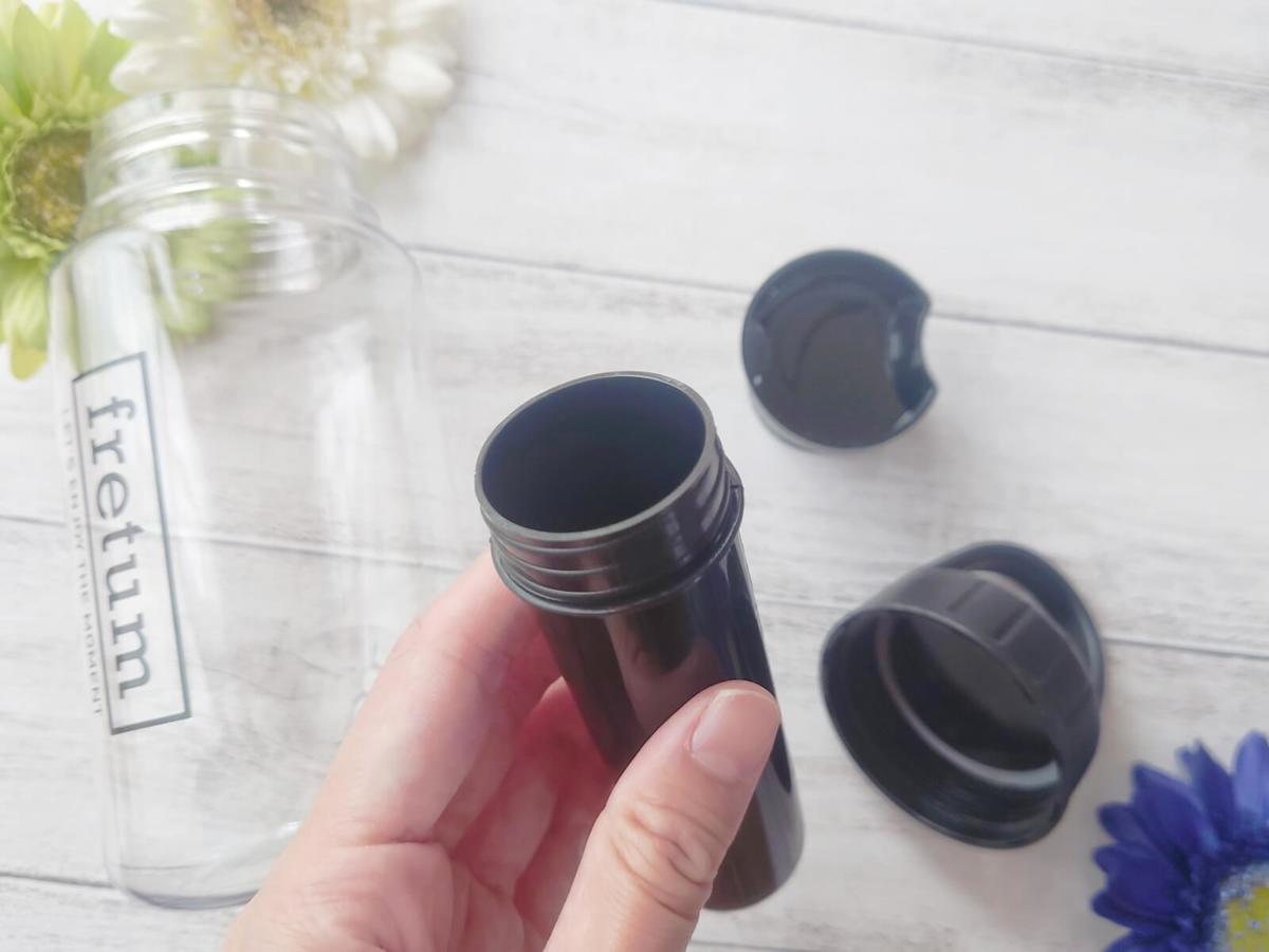 ここに8分目まで氷を入れて、凍らせ、飲み物をボトル本体にいれセットすれば、冷たさが保たれます。
