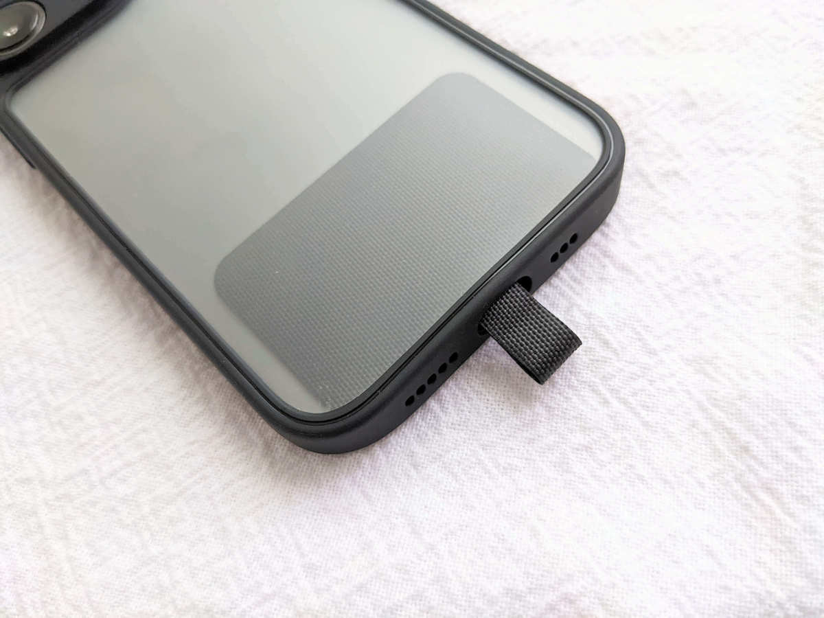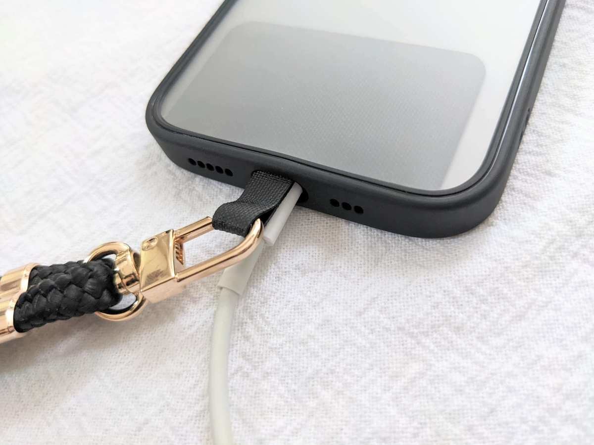 ストラップはつけたまま充電もできるので、いちいち取り外す必要がありません。 ちなみに3つのケースで試してみましたが、どれも充電はできました。