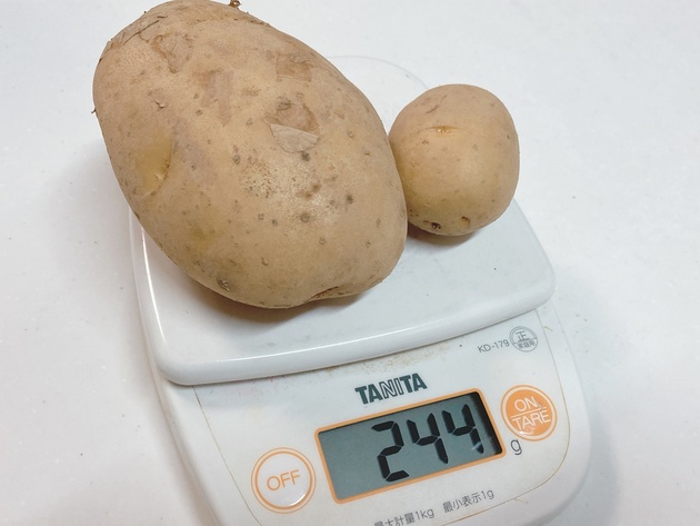 家事ヤロウインスタにはじゃがいも分量が書かれていませんが、山本ゆりさんのアメブロで確認すると250gとの記載があります♪