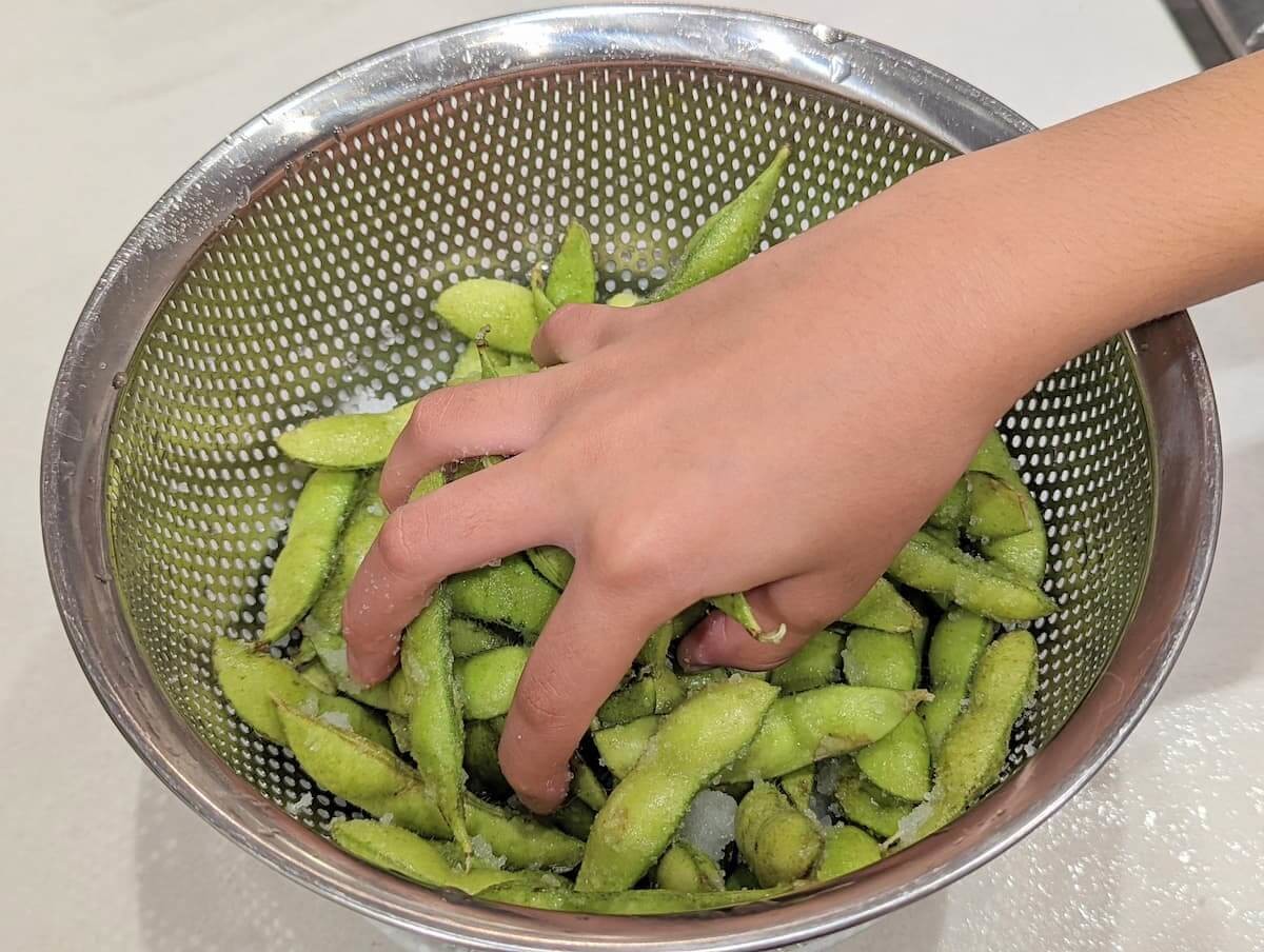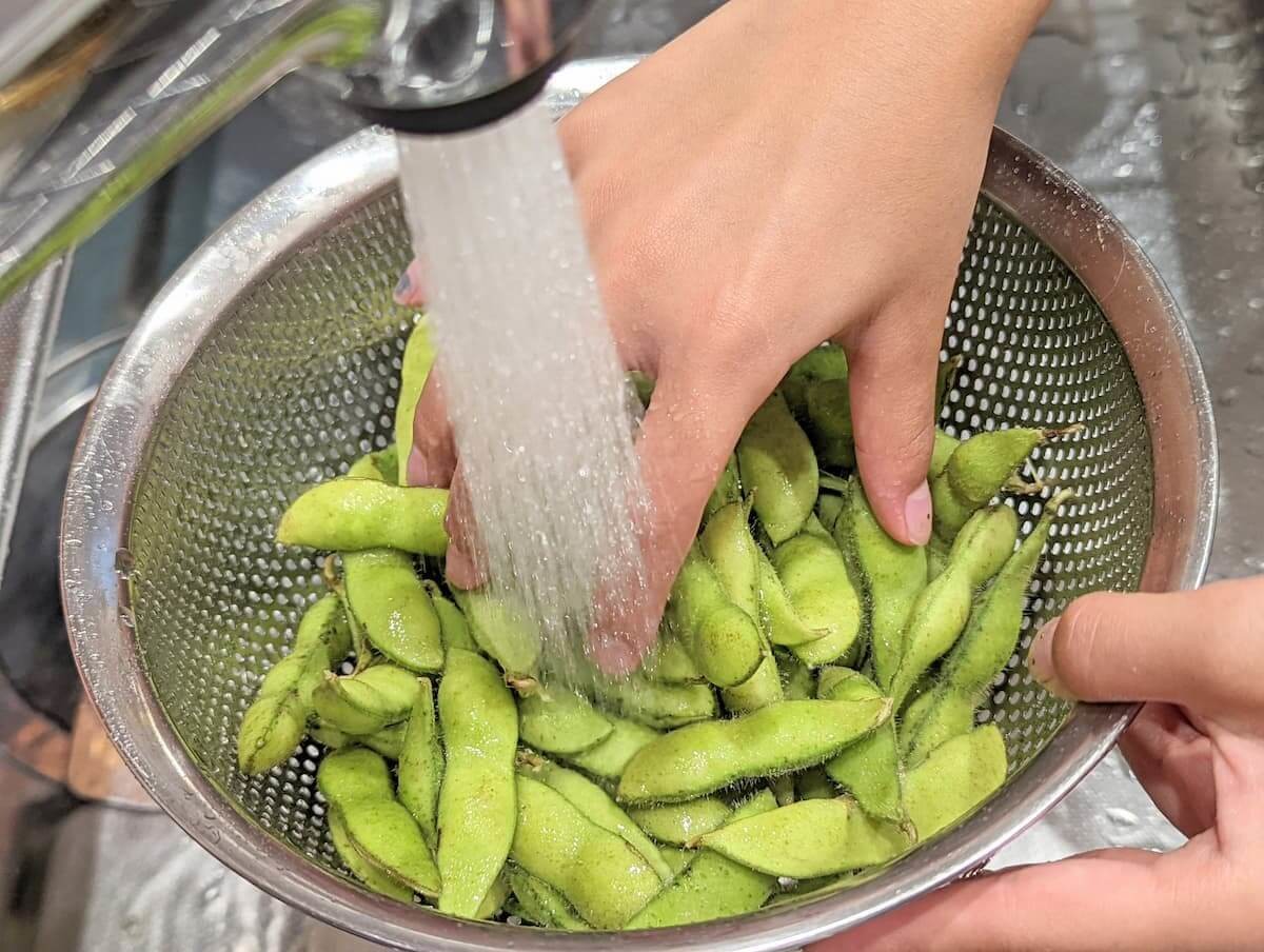 まずは皮ごと枝豆をよく洗います。