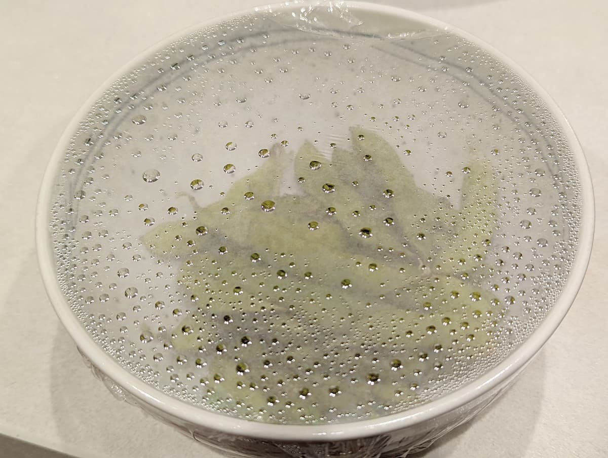 もう一度600Wで2分加熱して、ラップをしたまま8分蒸らします。