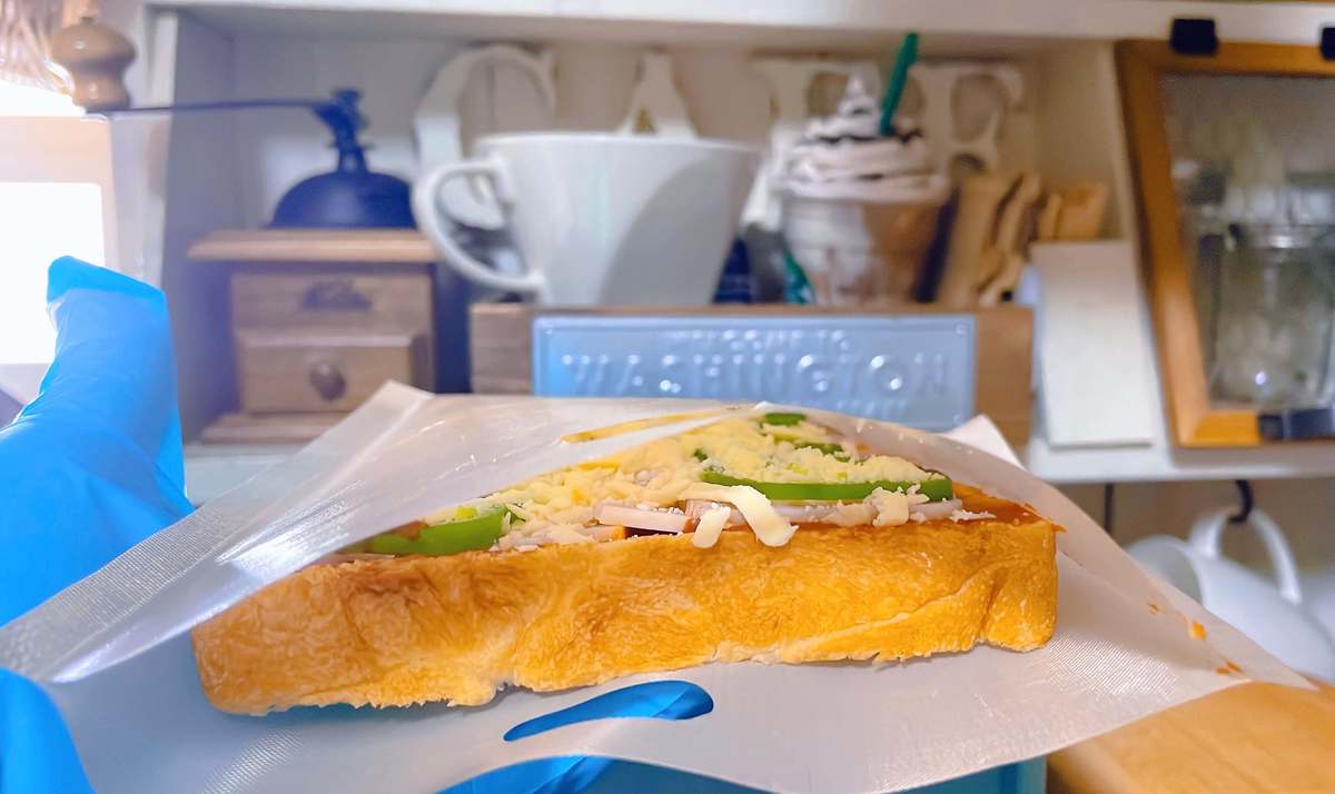 焼き加減はオーブントースターの奥側になったパンの端が焦げてしまいました。