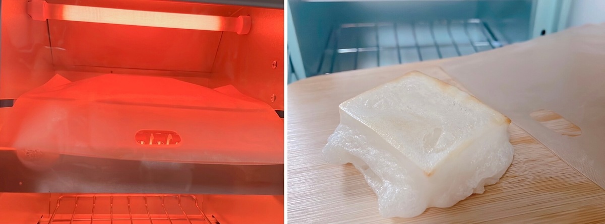 袋が熱で溶けるのではと不安を抱えながら、オーブントースターの前に張り付いて焼き加減を見守りました。