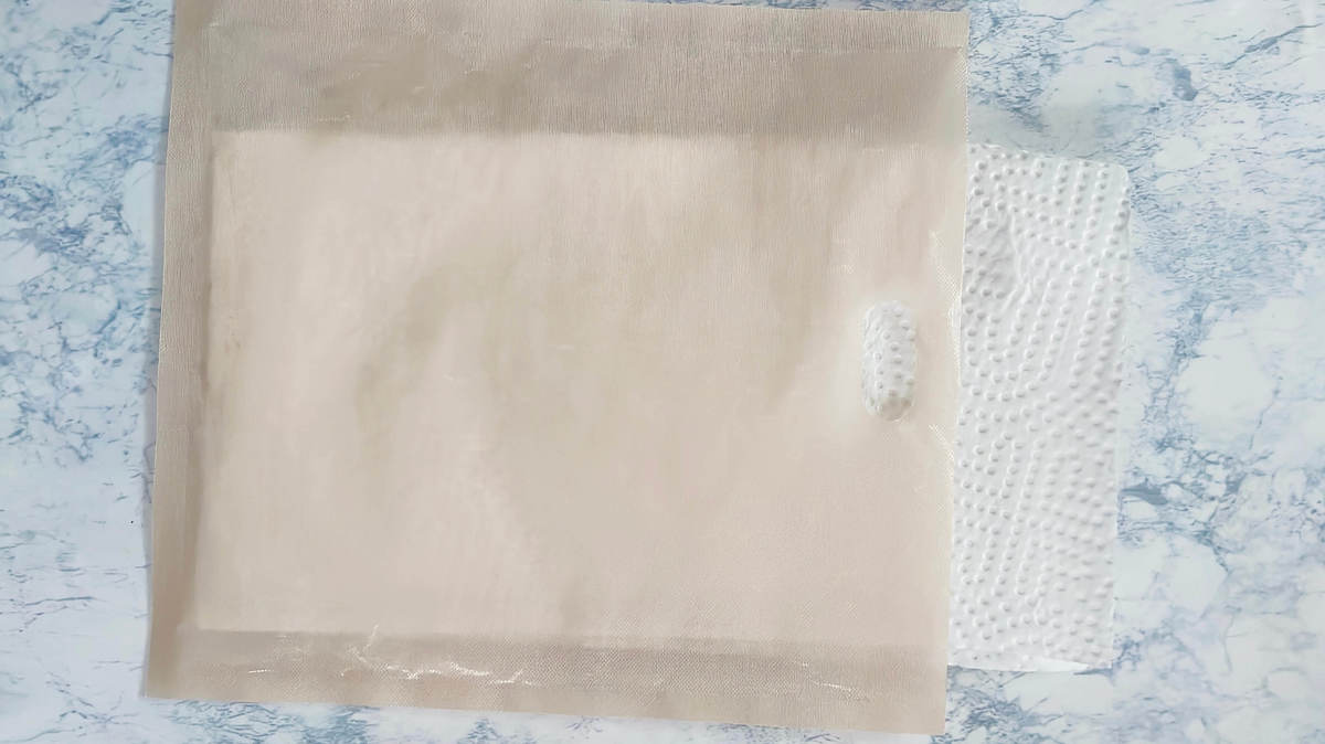 材質はガラス繊維(フッ素樹脂加工)で袋の内側の手触りはツルツルしています。
