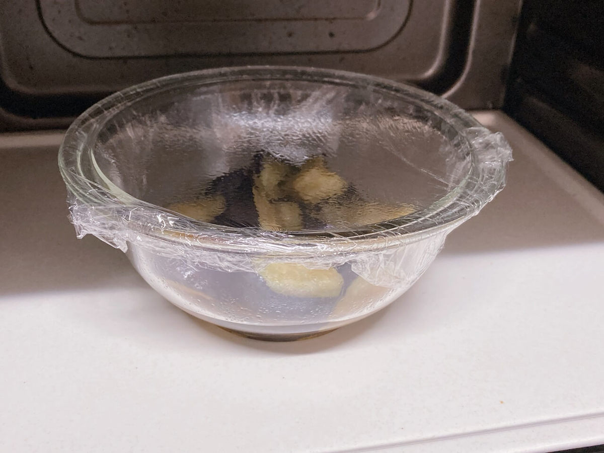 今回、倍量での調理ですが、レシピ表記のレンチン時間(600W3分)でOKでした。