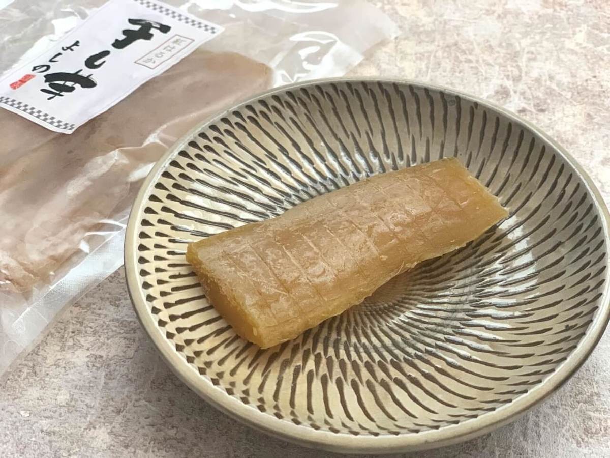 厚切りなので、噛みごたえもあって1切でかなり満足です。道の駅で干し芋に出会うたび、買ってしまうわが家ですが、この干し芋はこれまで食べた中でもかなりおいしかったです。
