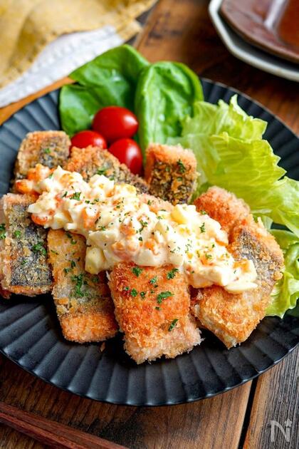 揚げ焼きで簡単に作れる鮭フライです。卵の代わりにマヨネーズを使うことで、衣付けの手間を軽減。サックサクの食感、鮭の旨味、タルタルソースの組み合わせが、最高に美味しい一品です。