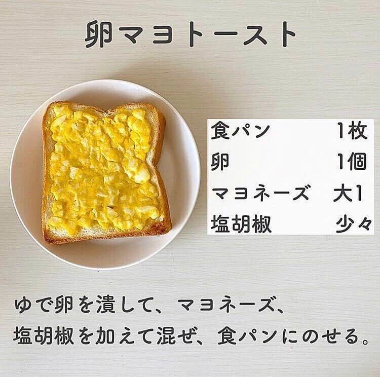 ゆで卵をつぶして、マヨネーズ、塩、こしょうを混ぜ、食パンにのせるだけ!