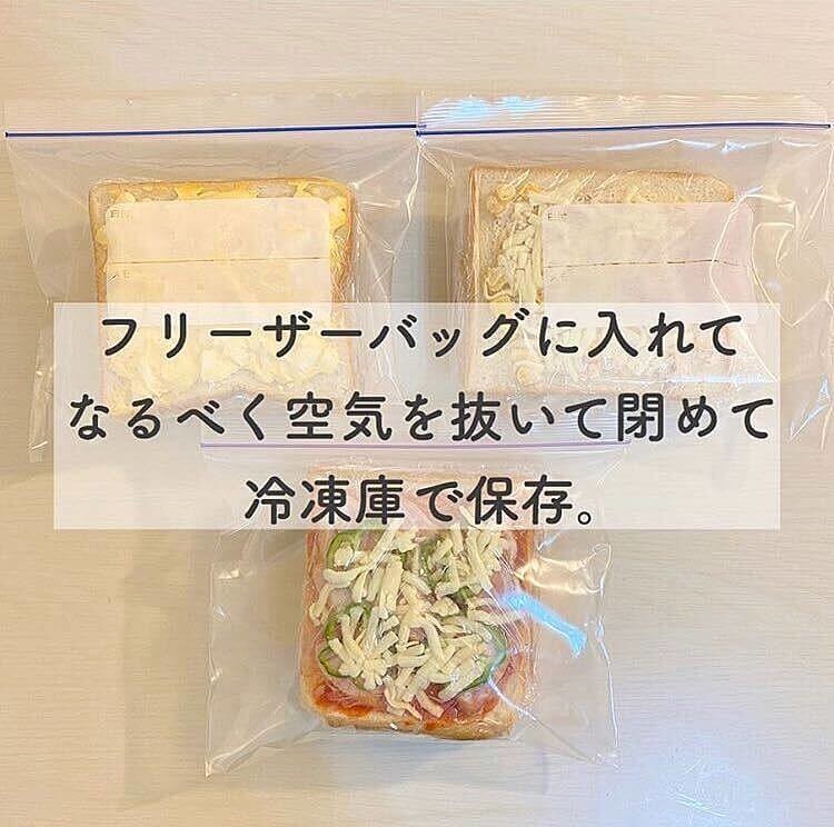 食費節約のコツは、「食品ロスを出さないこと」。とくに傷みやすい食パンは、冷凍保存をするのがおすすめです。 事前にトッピングしておくと、「朝は焼くだけ」なのでラク! 慌ただしい朝食の支度も時短になり、ラクにできるものでおすすめです。