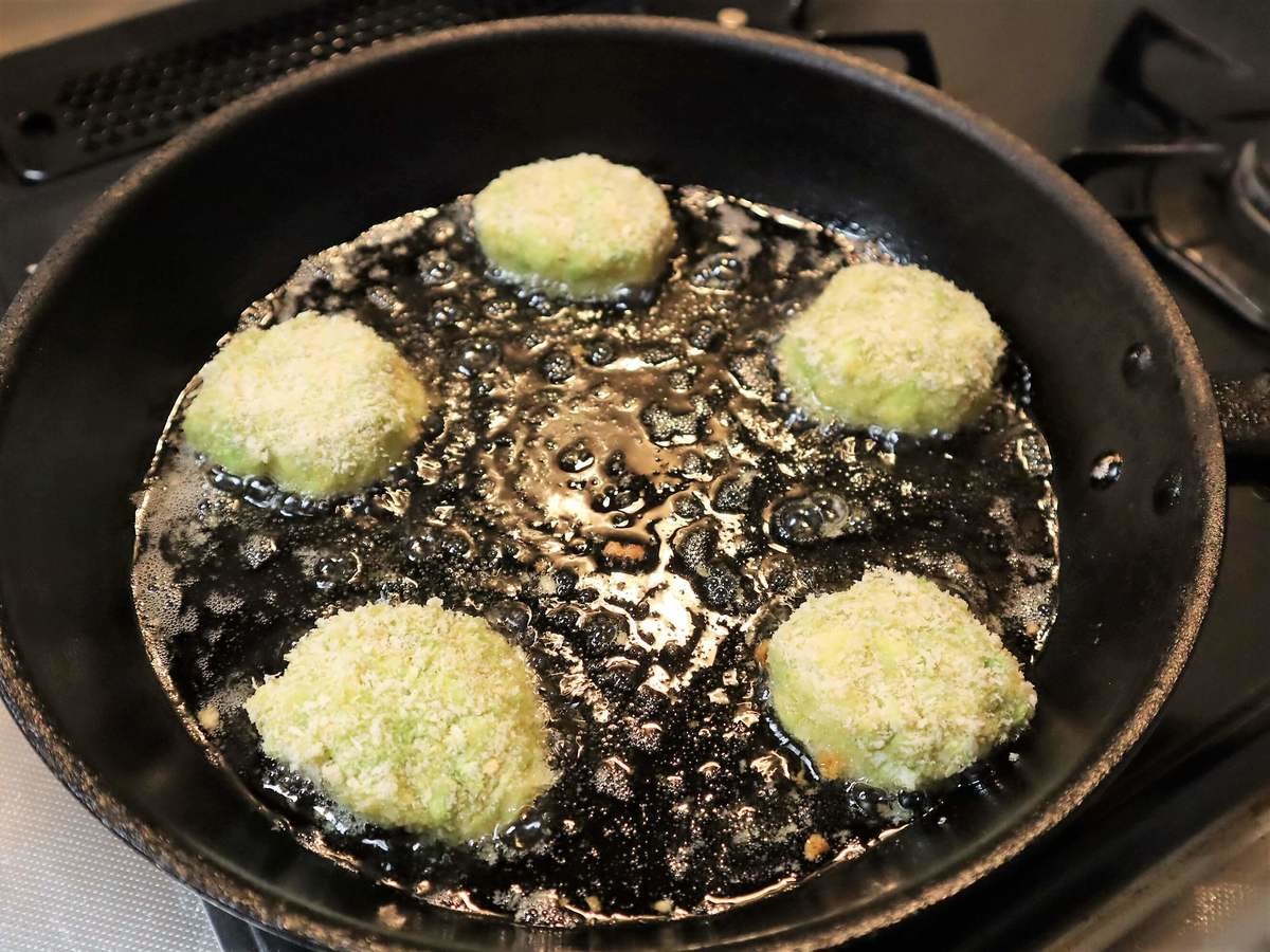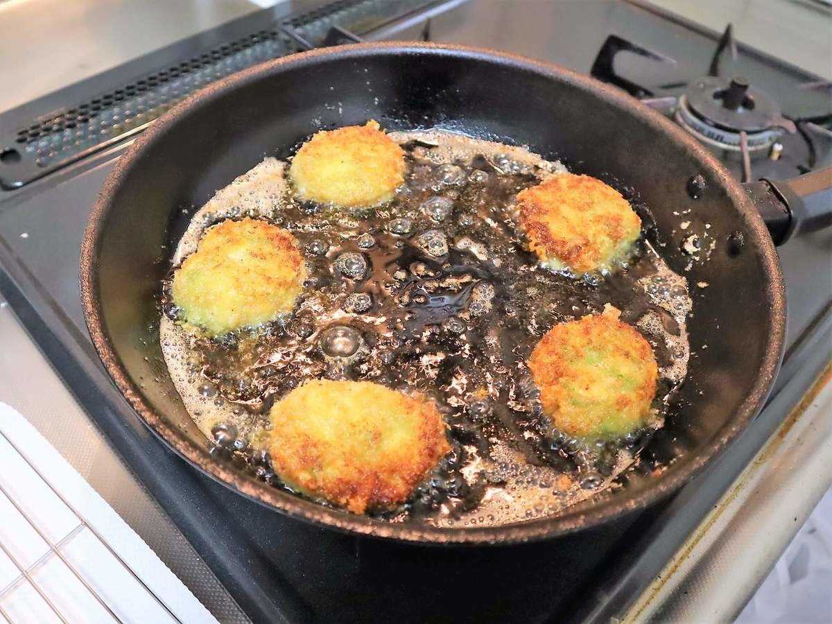 - フライパンにサラダ油を入れ、揚げ焼きにする。