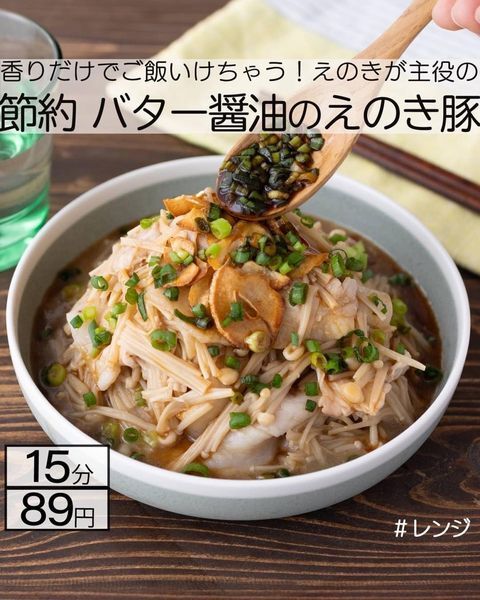 メイン食材はえのきと豚バラ肉だけ!バター醤油のコクとうま味でご飯がどんどん進むえのき豚は、レンチンで簡単、しかもお財布に優しいレシピだから覚えておいて損はありません。