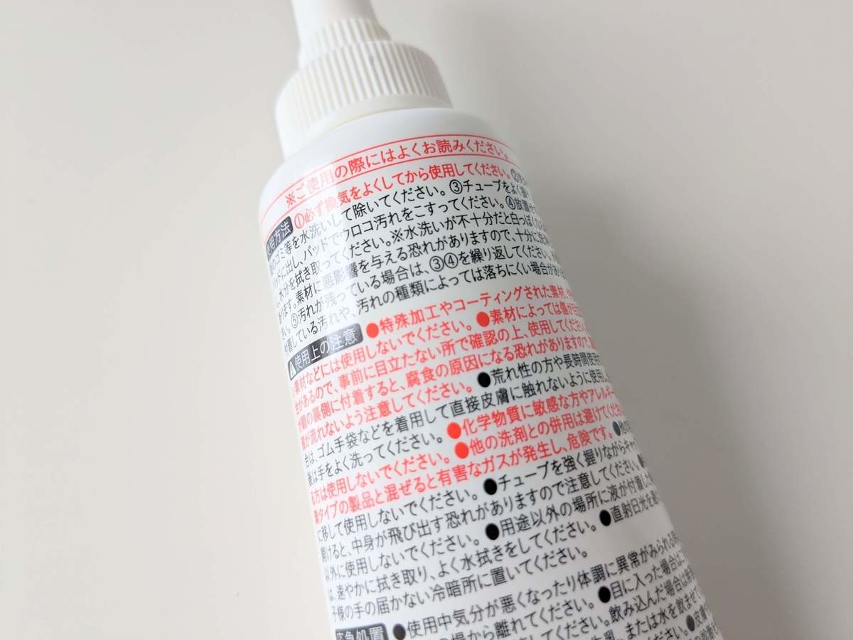 こちらは研磨剤が入っているので、心配なときは目立たない所で試してから使うことをおすすめします。 また塩素系の成分と混ぜると危険なため、必ず単独で使用してください。