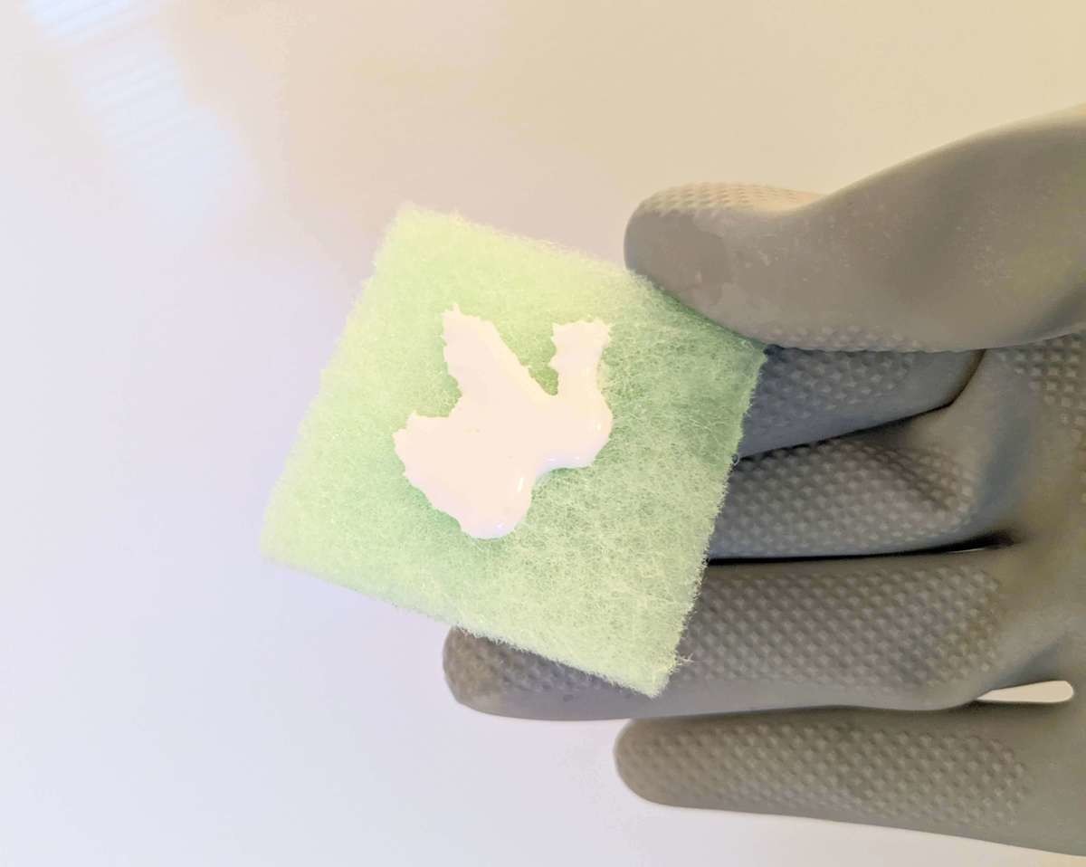 使用する量の目安は、10×10cmの面積に1gです。では、さっそく磨いていきたいと思います!