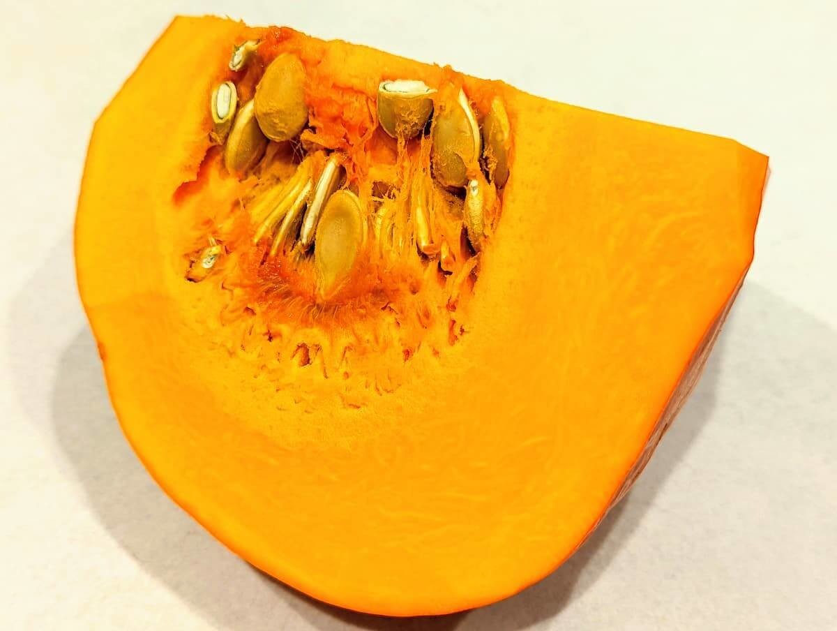 私が仕事でカボチャの鮮度チェックをするときはワタの状態をチェックします。カボチャはワタから傷みやすいので買うときもワタを中心にチェックしましょう。