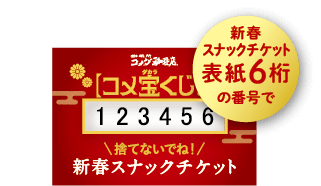 ※「新春スナックチケット」の表紙は景品の抽選に使用いたしますので、当選発表まではお手元に保管いただきますよう、よろしくお願いいたします。