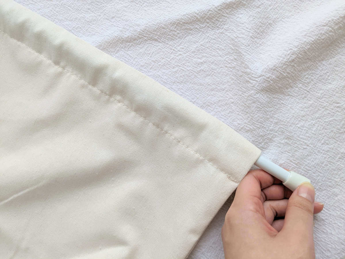 タペストリーにはスリットが入っていて、そこに電源部を収納できるため見た目もすっきり。 コード類も表からは見えないので、インテリアの雰囲気を損ねません。
