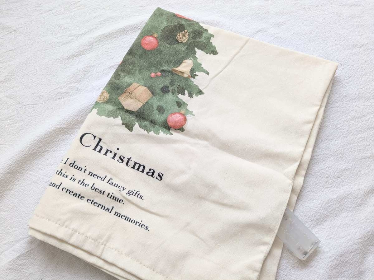 以前からクリスマスツリーが描かれたタペストリーが気になっていて、いつか買おうと思っていたんですが、スリーコインズでも買えることが判明!