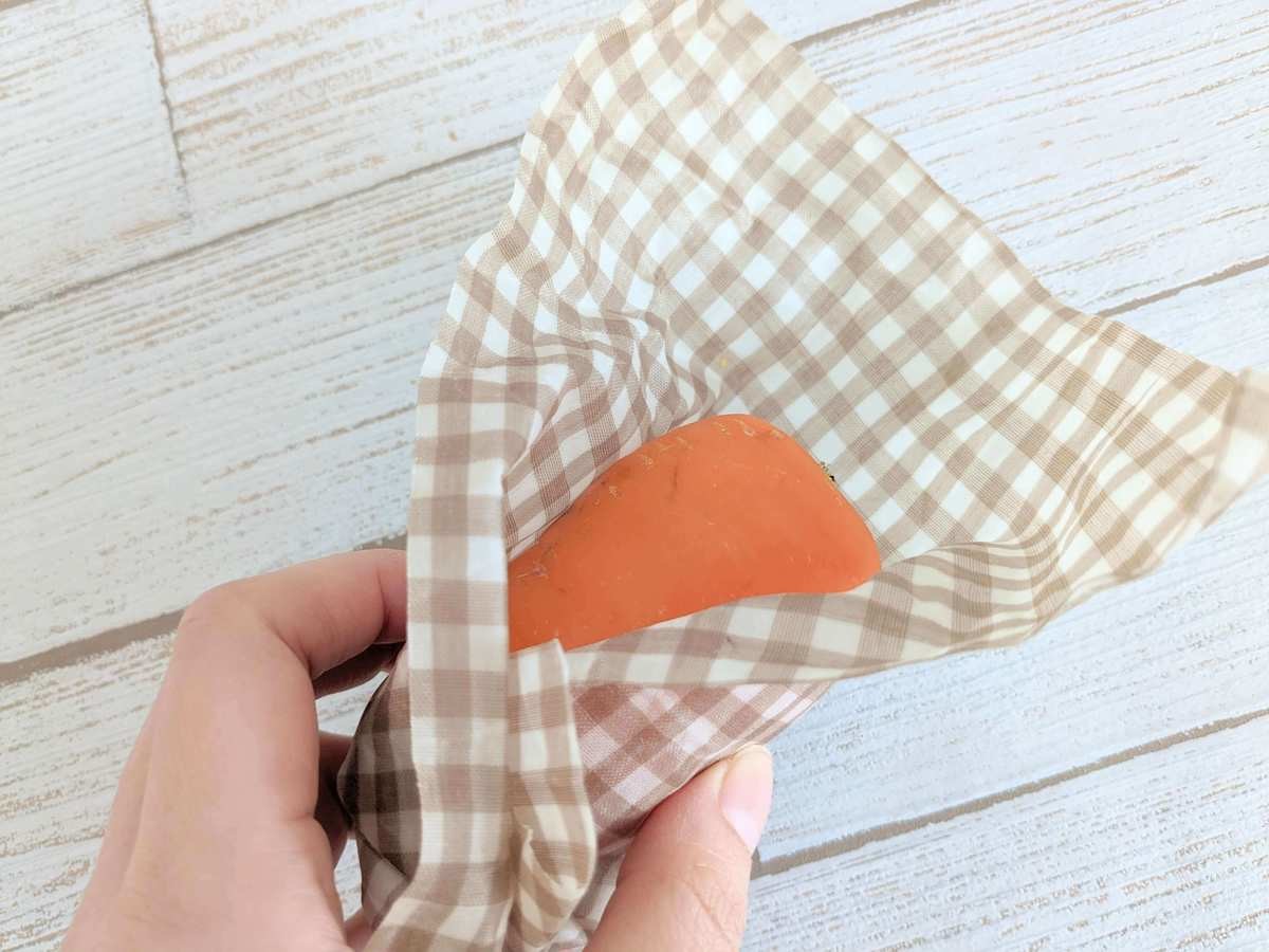 天然素材ということで、こんな風に野菜を直接包むこともできるんです。さらにサンドイッチのラップに使えば、おしゃれなカフェ風ランチにも!