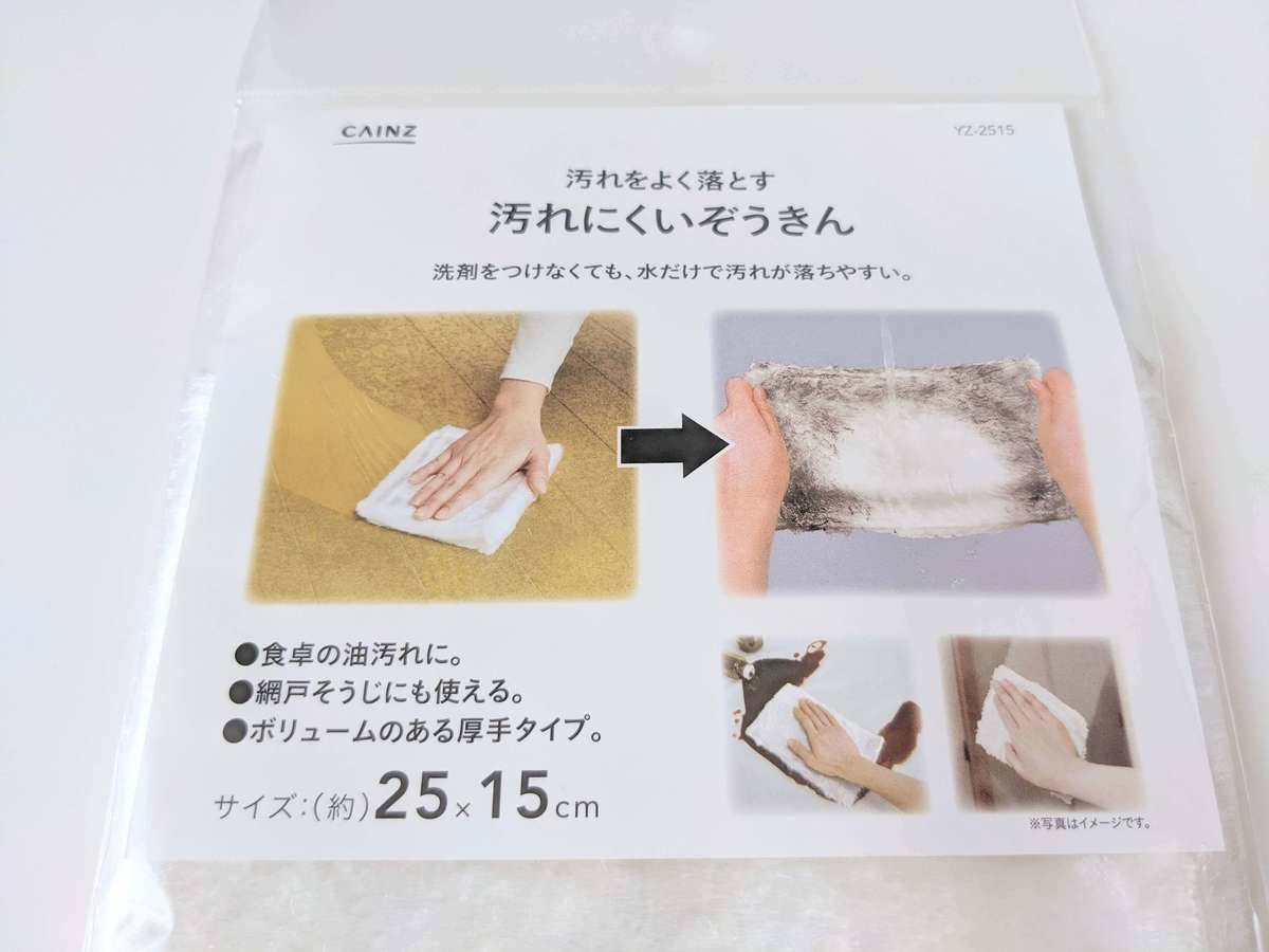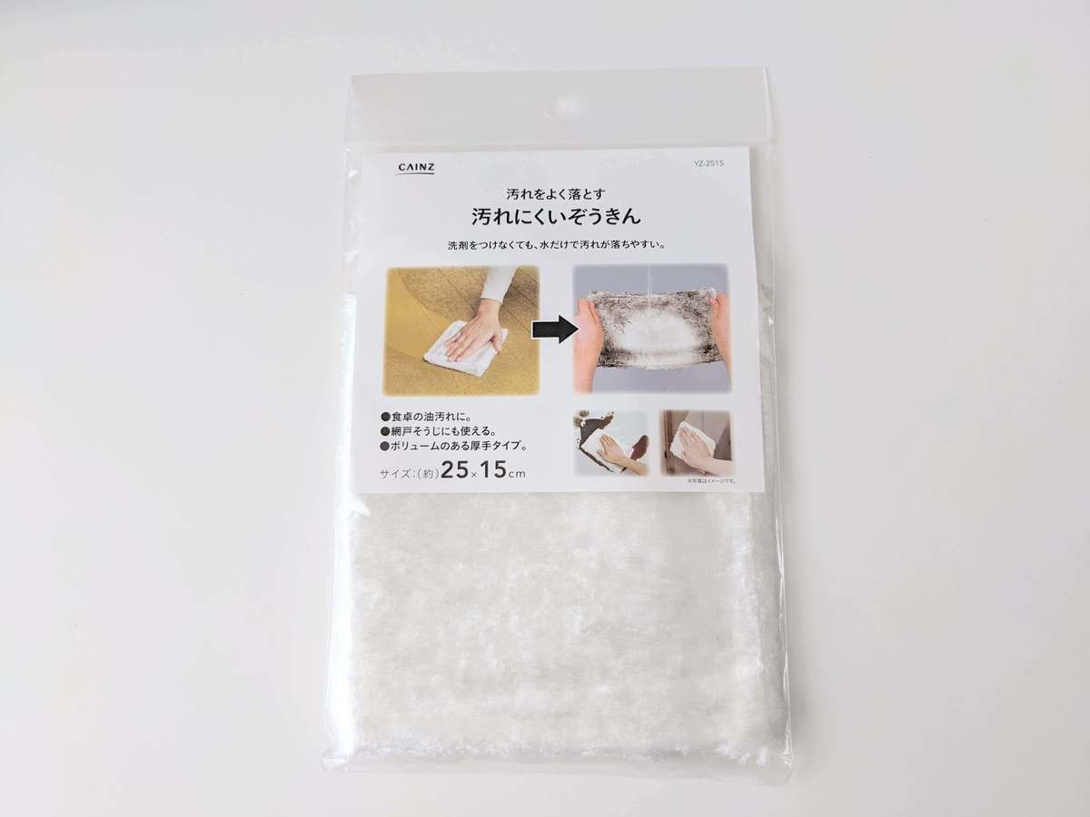 こちらがカインズで見つけた「汚れにくいぞうきん」です。 〝こんなにキレイに落ちるの?〟と購入時は半信半疑でしたが、使ってみてビックリ!