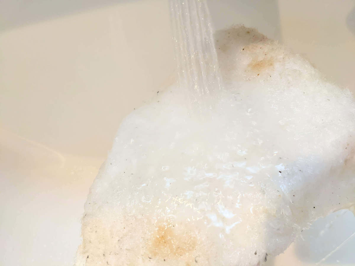 最後に少しだけこすり洗いしたら、ほぼ購入時の白さに戻りました。 しかもベタつきもないんです!