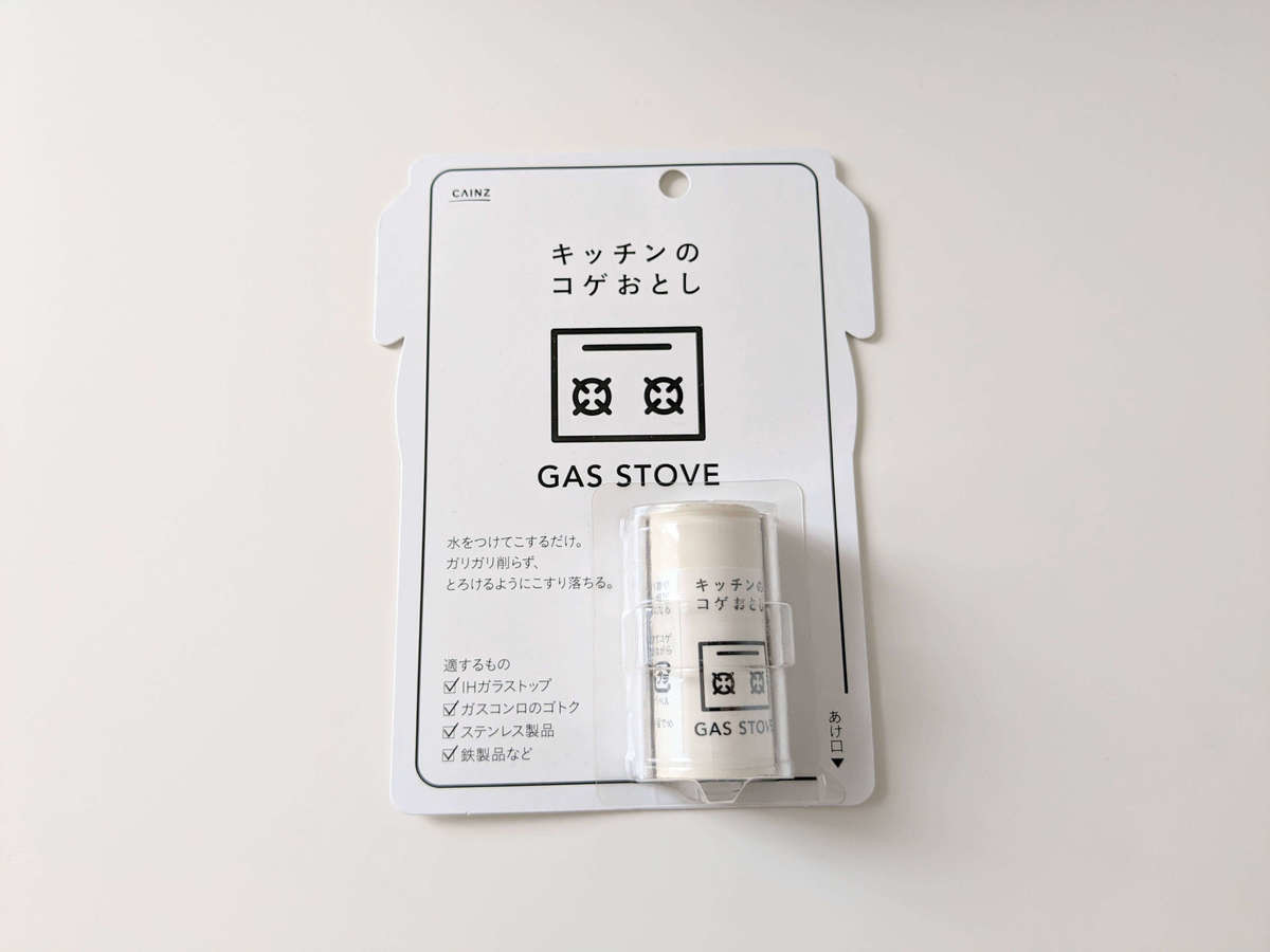 - カインズ「水をつけて擦るだけ キッチンのコゲおとし スティック状」498円(税込)