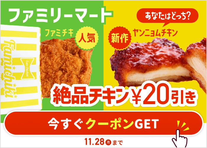 【11/28まで!割引クーポン付き】飛ぶように売れそう!【ファミマ】「ヤンニョムチキン」"中毒級"降臨