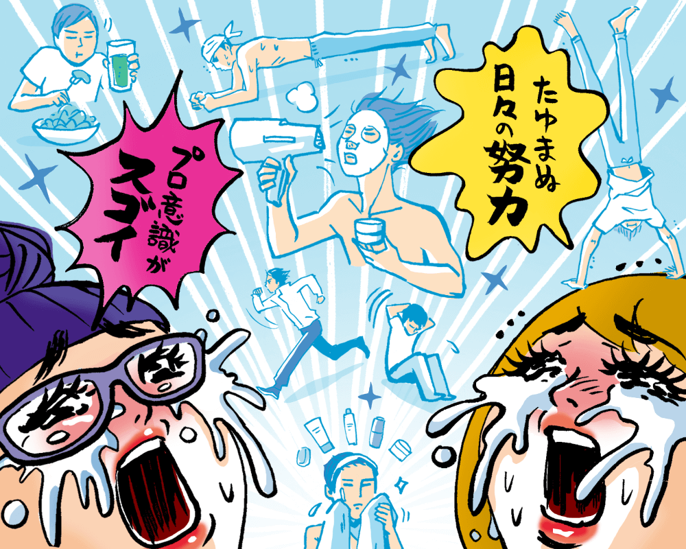 クレンジングにパック……そんな彼らを前に、酔いつぶれてメイクも落とさずに寝てしまった自分を反省するのでした。「彼らもやってるんだ、私も明日からがんばろう!」そんな気にさせてくれるルーティンが詰まっています。
