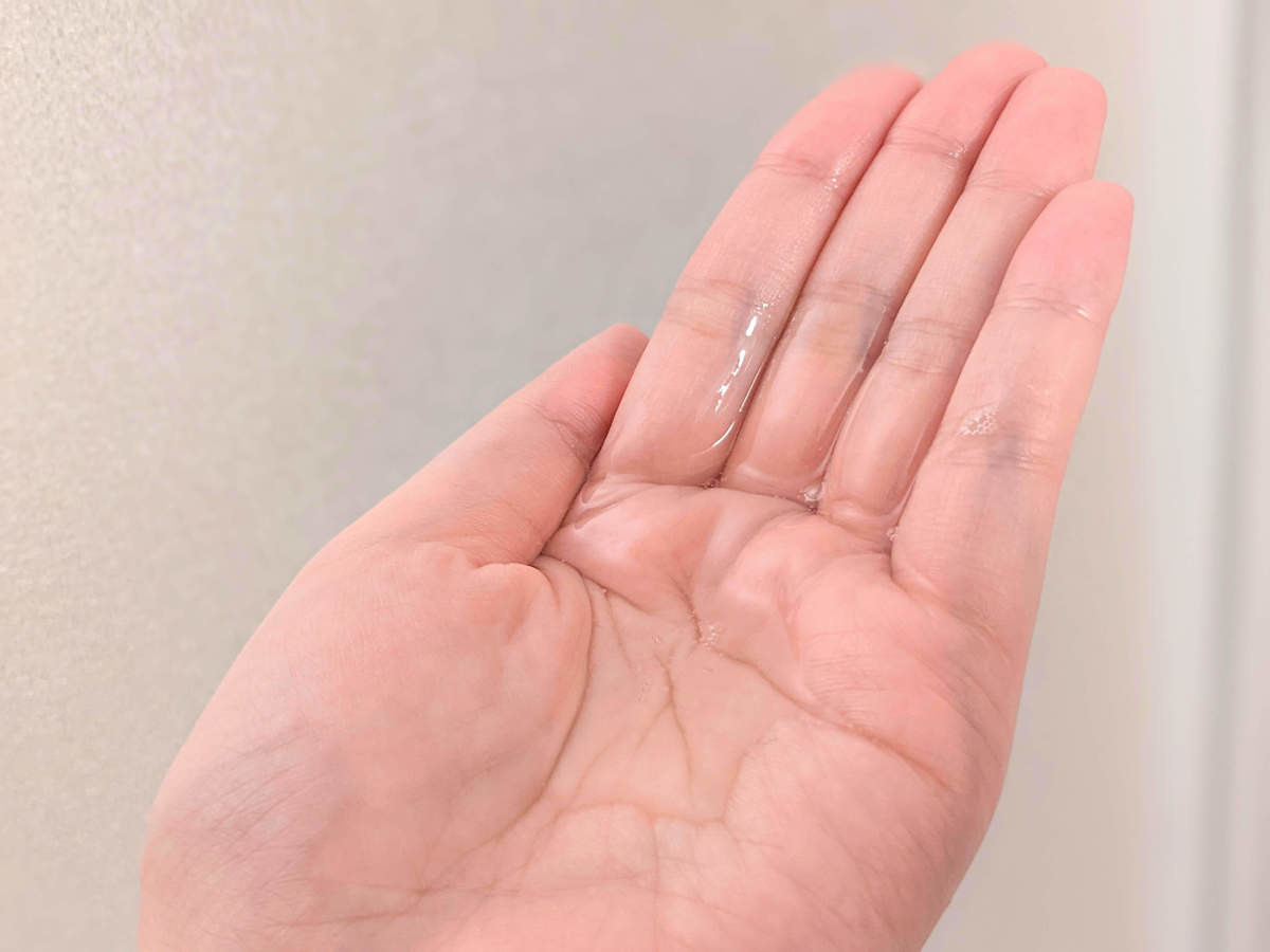 その後、ぬるま湯で洗い流したら完了です。この時点で、すでに保湿力の高さを実感できます!
