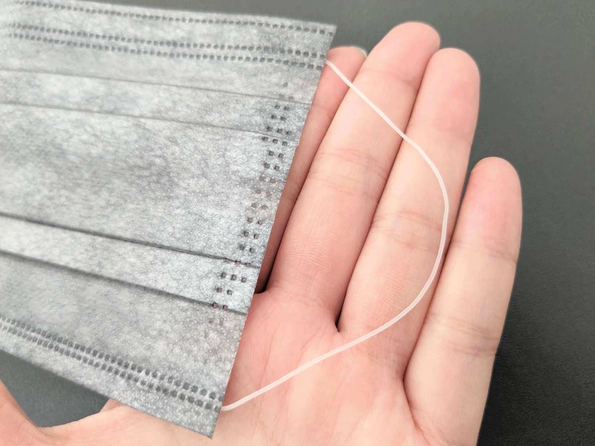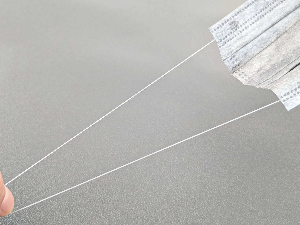 丸ゴムや平ゴムのマスクと比べても、桁違いの細さです!これ以上に細いものはなかなかないかもしれません。
