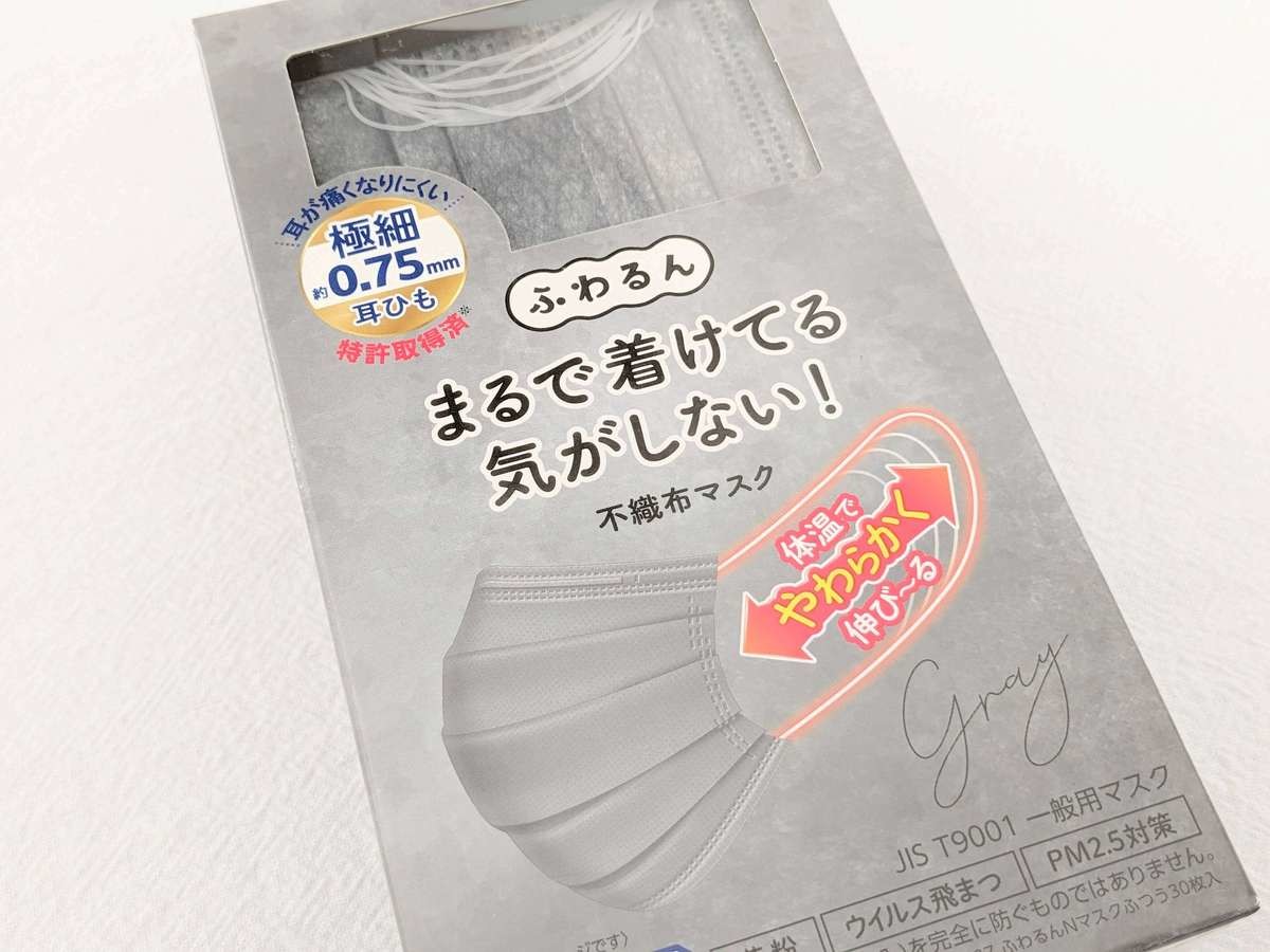それは家庭用品でお馴染みのレックが出している「ふわるん不織布マスク」。キャッチコピーが〝まるで着けてる気がしない!〟なんですが、本当にその通りなんです!