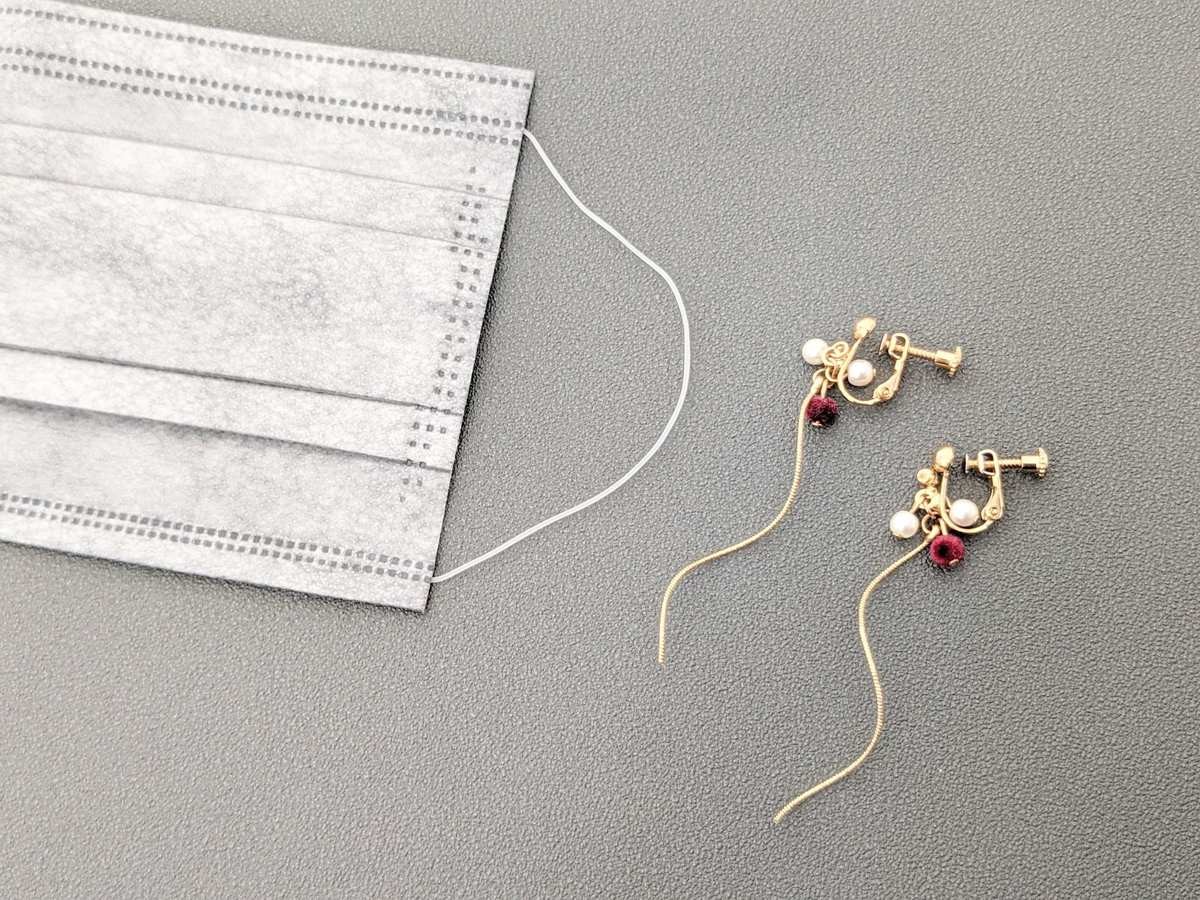 太い紐だとイヤリングに引っかかってしまったり、存在が薄れてしまったりすることもありますよね。ふわるん不織布マスクなら紐が目立たないので、アクセサリーの邪魔にならないことも高ポイントでした。