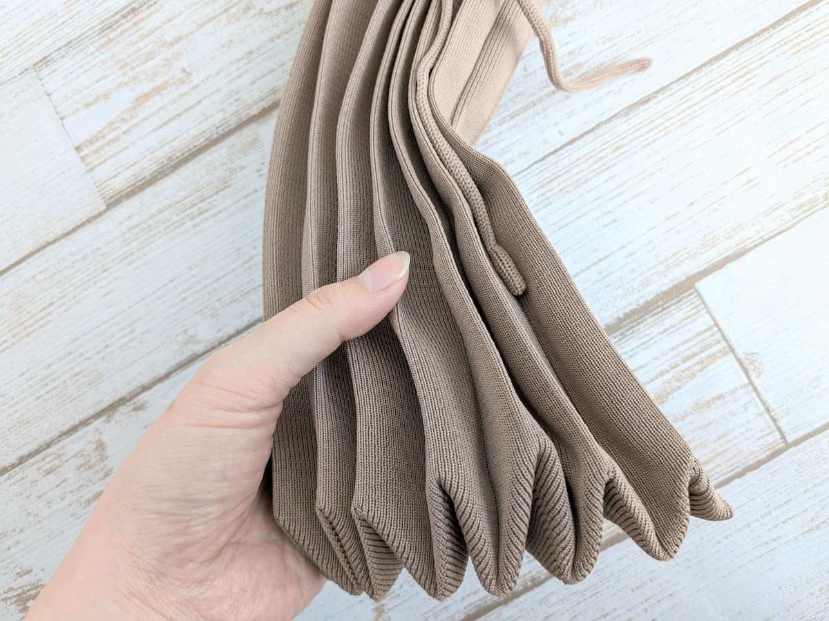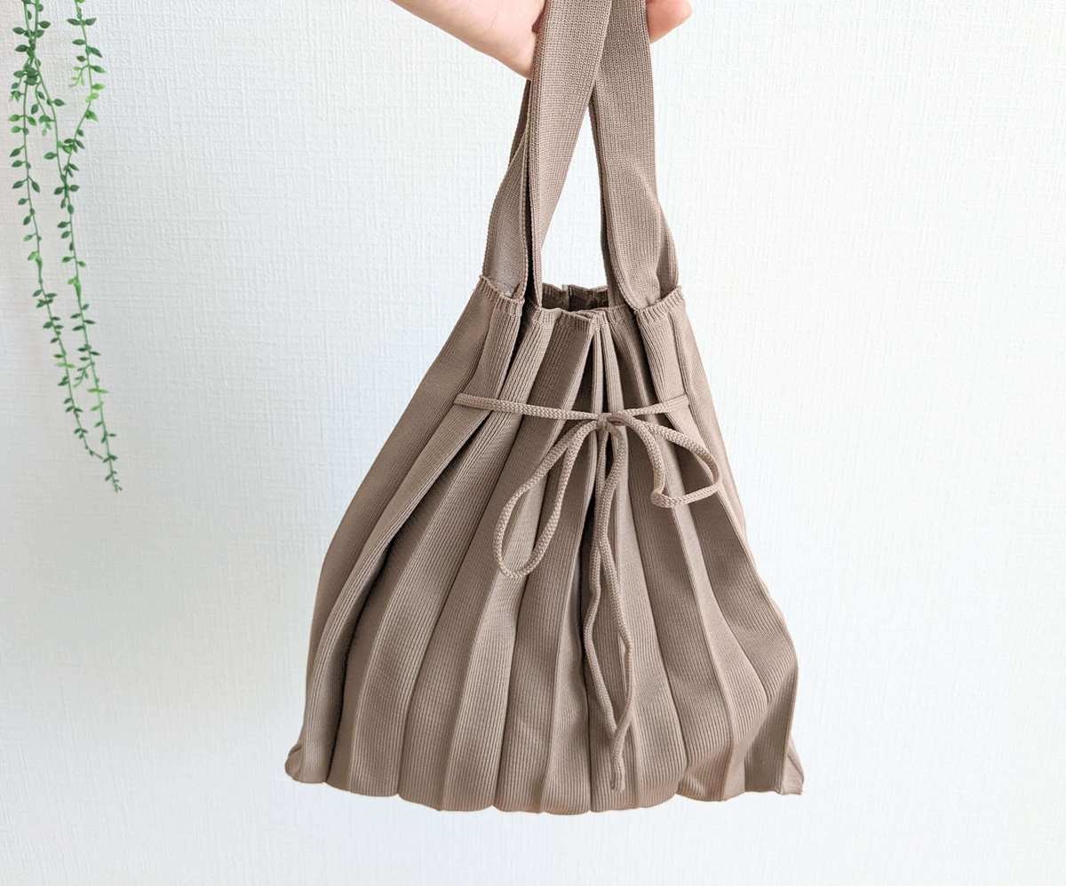 くしゃくしゃに丸めて収納するタイプだと、使うときにシワシワになっていることが多いんですが、プリーツニットバッグはその心配がありません。