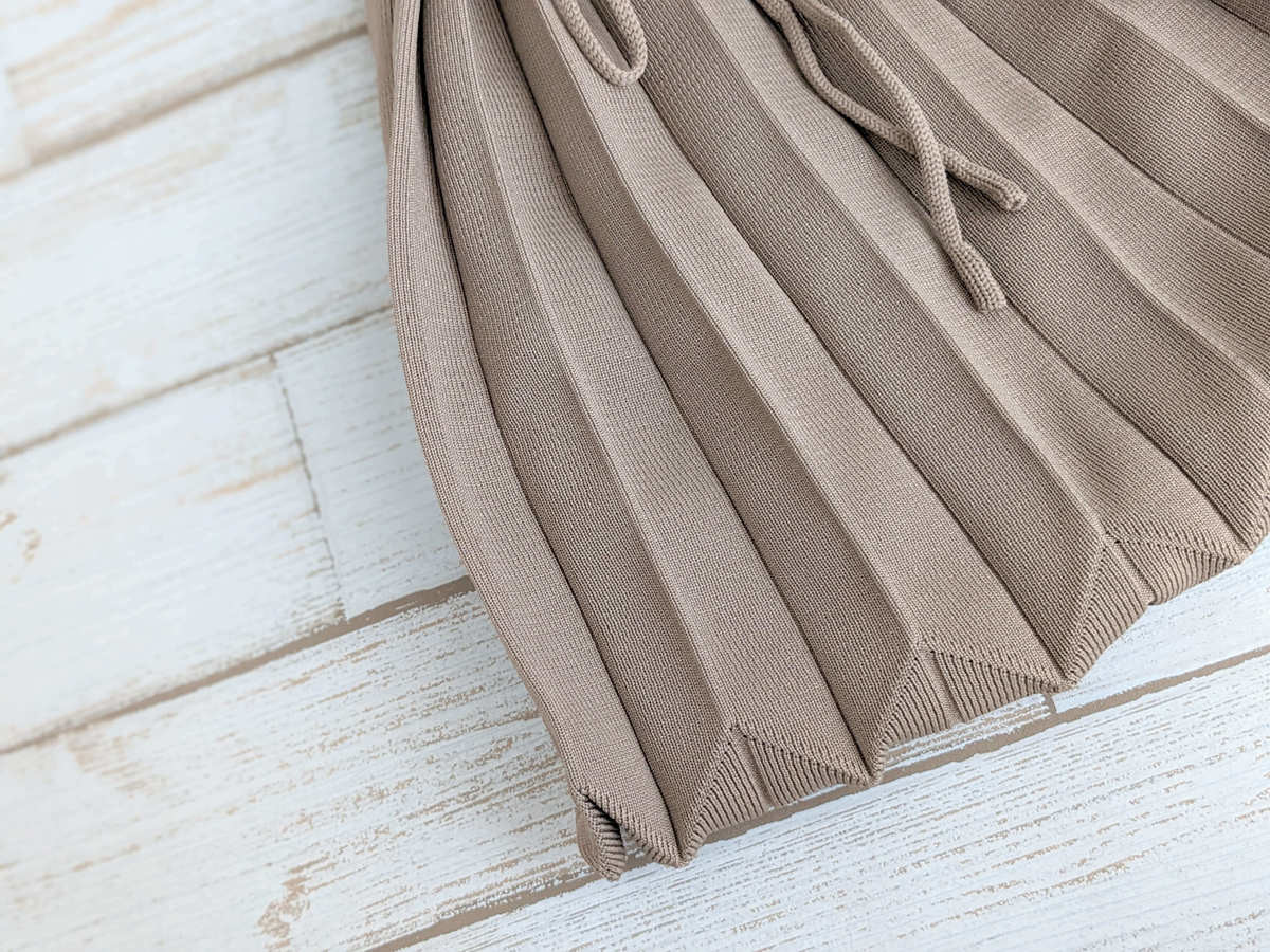 プリーツ加工といい、素材感といい、今季のトレンドを取り入れたデザインがとにかく素敵。生地もしっかりしていますし、秋から春先まで長く使えそうです。