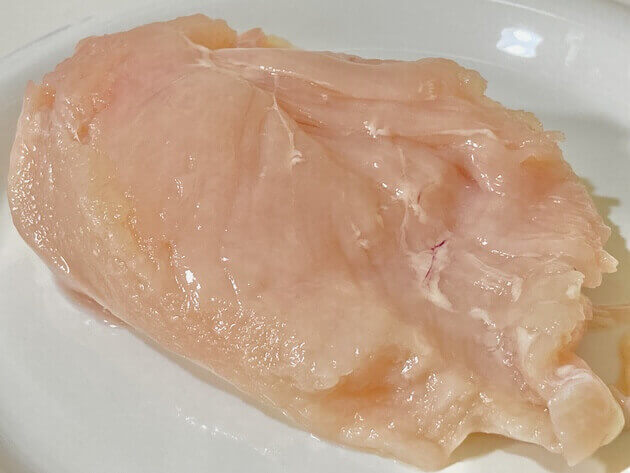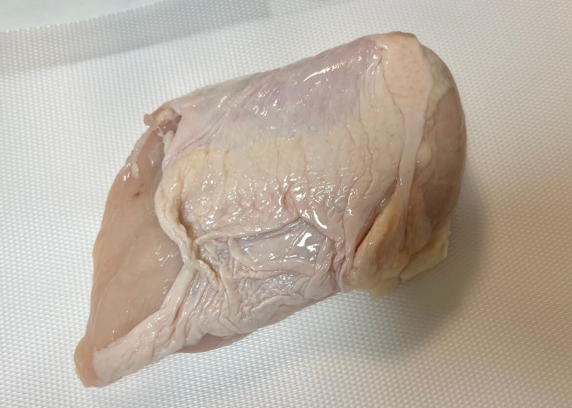 はじめに、鶏むね肉の皮と脂身を取り除いていきます。
