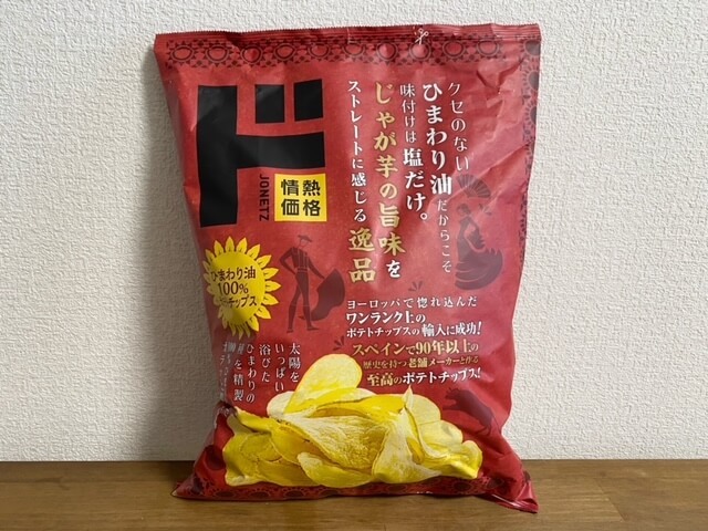 とにかくデカい、こちらのひまわり油100%ポテトチップスはスペインの老舗メーカーが作るワンランク上のポテチ!