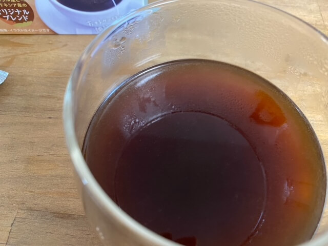 黒々とした見るからに濃そうなコーヒーというよりは、アメリカンかな?と思うくらい半分透き通った感じです。