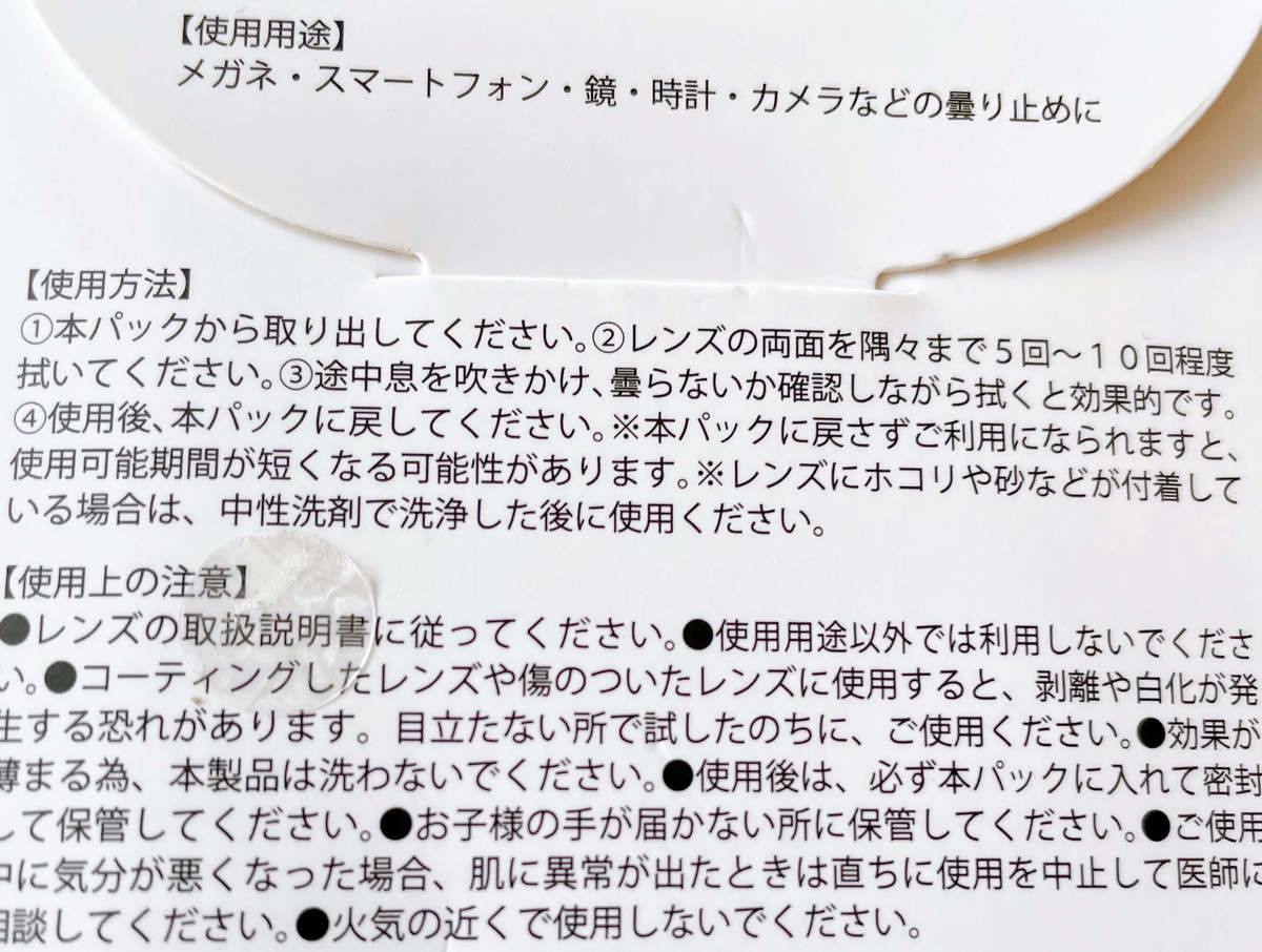 使い方も特に他と違いはなく、「レンズの両面を隅々まで5回~10回程度拭く」だけ。